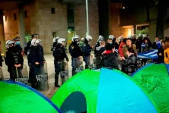 Έξω από το Δημαρχείο της Θεσσαλονίκης κατέληξε η πορεία των διαδηλωτών που πραγματοποιήθηκε αργά το απόγευμα της Κυριακής…