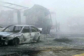 Βομβαρδισμένο τοπίο θυμίζουν τα διόδια Πολυμύλου στην Εγνατία Οδό στην Κοζάνη, μετά το σοκαριστικό τροχαίο που έλαβε χώρα…