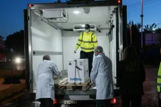 Συνοδεία ισχυρής αστυνομικής δύναμης έφτασαν λίγο πριν τις 7 το πρωί τα πρώτα εμβόλια κατά της Covid-19 στην…