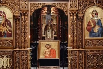 Το πρωί τελείται ο Εσπερινός της Μεγάλης Πέμπτης και Προηγιασμένη Θεία Λειτουργία. Είναι η τελευταία Προηγιασμένη Θεία Λειτουργία του έτους. Το…