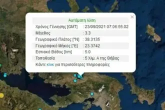 Σεισμός τώρα: Σεισμική δόνηση μεγέθους 3,3 βαθμών της κλίμακας Ρίχτερ, σημειώθηκε στις 10.06 το πρωί της Πέμπτης 23…