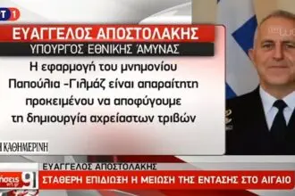 O υπουργός Εθνικής Άμυνας, Ευάγγελος Αποστολάκης, σε συνέντευξη που παραχώρησε στο τηλεοπτικό σταθμό ΑΝΤ1 δήλωσε πως δεν θεωρεί…