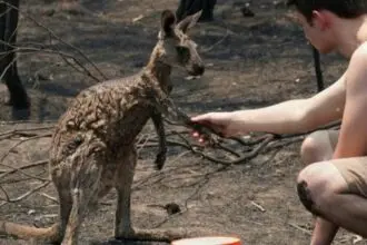 Ραγίζουν καρδιές οι εικόνες ενός καγκουρό που ικετεύει για βοήθεια, έχοντας υποστεί εγκαύματα από τις καταστροφικές φωτιές στην…