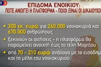 Επιδότηση ενοικίου από 70 ευρώ έως και 210 ευρώ θα λάβουν μηνιαίως 260,000 νοικοκυριά από τις αρχές του…