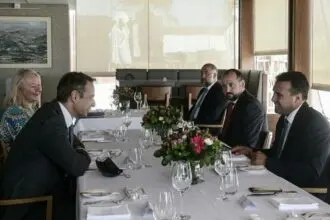 Γεύμα προς τιμήν του πρωθυπουργού των Σκοπίων Ζόραν Ζάεφ παρέθεσε ο πρωθυπουργός Κυριάκος Μητσοτάκης, επ’ ευκαιρίας της έλευσής…