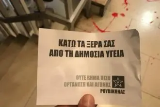 Ομάδα μελών του Ρουβίκωνα έκανε "παρέμβαση" στο πολιτικό γραφείο του Υπ. Υγείας, Βασίλη Κικίλια σημαίνοντας «συναγερμό» στην Αστυνομία.…