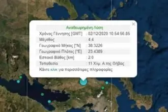 Σεισμική δόνηση μεγέθους 4,4 Ρίχτερ και με εστιακό βάθος μόλις 2 χλμ σημειώθηκε στις 12.54 μετά το μεσημέρι…