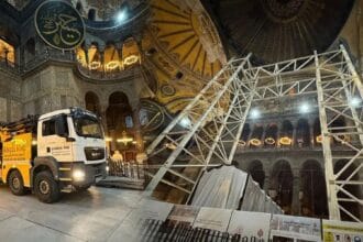 Οι εικόνες βαρέων οχημάτων εντός του μνημείου της Αγίας Σοφίας αναζωπυρώνουν φόβους για βλάβες σε έναν από τους…