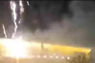 Η παρατεταμένη ρίψη πυροτεχνημάτων πραγματοποιήθηκε χωρίς κανένα μέτρο ασφάλειας και, όπως φαίνεται στο υλικό, προς το τέλος της εκδήλωσης κάτι δεν πήγε…